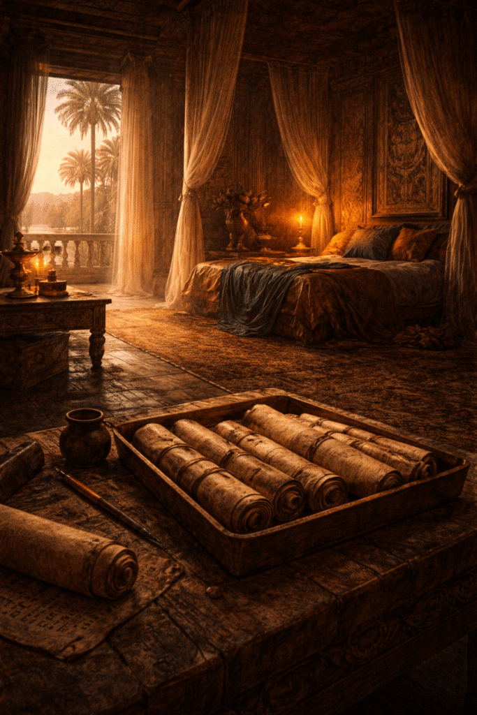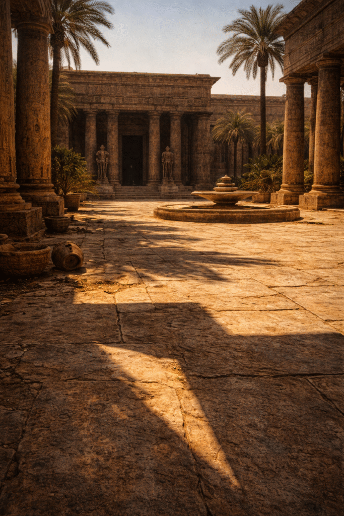 Year: 1439 BCE — Waset (Luxor), The Quiet Palace, Karnak’s Shadowed Halls, and Deir el-Bahari in the Late Heat